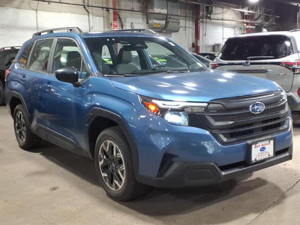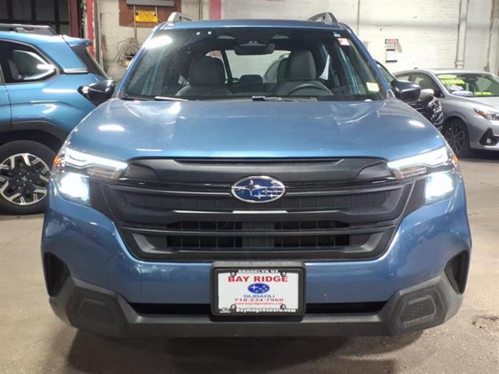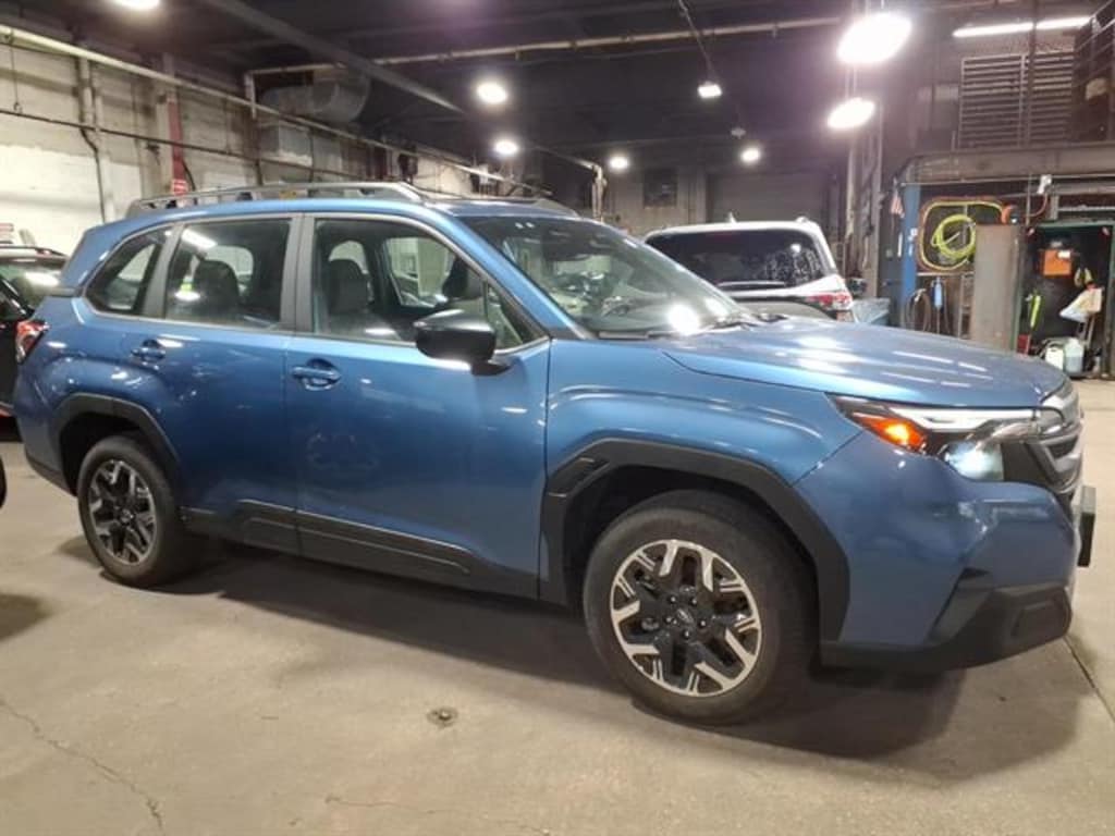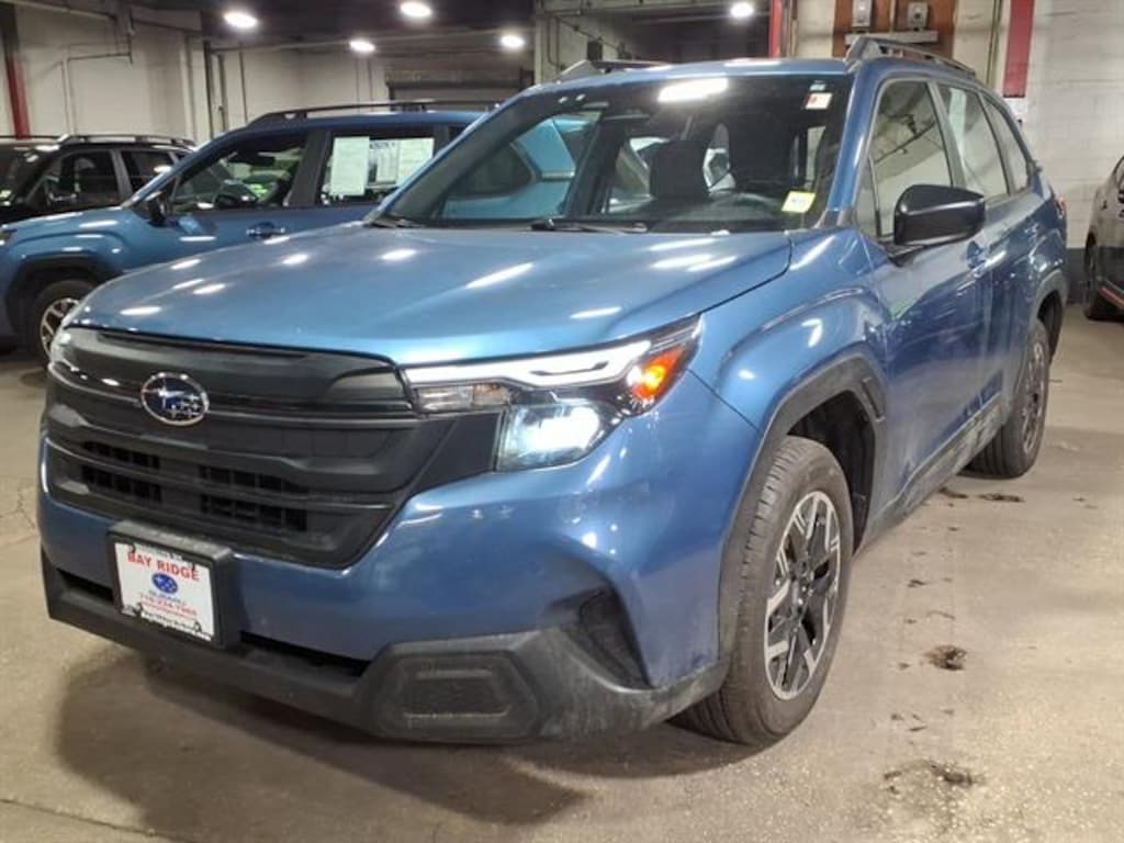 2025 Subaru Forester Base 3K Miles All-Weather Floor Liners, Auto-Dimming Mirror with Compass and Homelink, Cargo Cover, Standard Model 2025 ALG Residual Value Award Winner, 2025 J.D. Power and Associates Customer Service Index (CSI) Study: Highest Ranked Mass Market Brand, 2025 J.D. Power and Associates Customer Service Index (CSI) Study: Highest Ranked Mass Market SUV Brand Experience adventure in a nearly new Blue 2025 Subaru Forester AWD Base Crossover with just 3,149 miles! Enjoy Subaru's legendary full-time AWD and a fuel-efficient 2.5L engine, perfect for all seasons. Stay confident with advanced safety features like Front and Pedestrian Automatic Emergency Braking, Lane Keeping Assist, Lane Centering, Adaptive Cruise Control, and Pre-collision Warning Systems. Inside, enjoy comfort with automatic climate control, Apple CarPlay/Android Auto, STARLINK infotainment, and a 7-inch dual touchscreen. Convenience features include rearview camera with washer, keyless entry, and spacious cargo area with tie-down hooks and storage options. The versatile 60/40 split-fold rear seat provides flexibility for passengers and gear. Drive home this low-mileage Forester for the perfect blend of reliability, technology, and safety.Certified Pre-Owned