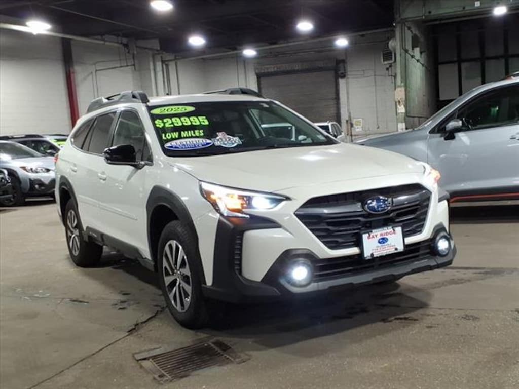 2025 Subaru Outback Premium 1K Miles Standard Model 2025 Car And Driver Editors Choice Awards: Station Wagons, 2025 J.D. Power and Associates Customer Service Index (CSI) Study: Highest Ranked Mass Market Brand, 2025 Vincentric Best CPO Value in America: SUVs Experience versatility and comfort in this White 2025 Subaru Outback AWD Premium with only 1,646 miles on the odometer! Ready for adventure or daily driving, this crossover features Subaru's legendary all-wheel drive and a fuel-efficient 2.5L H4 engine. Enjoy premium amenities including heated front seats, dual-zone automatic climate control, a power-adjustable driver's seat, and an 11.6-inch touchscreen with STARLINK infotainment, wireless Apple CarPlay and Android Auto. Stay safe with advanced features like Front Automatic Emergency Braking, Lane Keeping Assist, Adaptive Cruise Control, and Pedestrian Detection. The Outback also offers LED headlights, rearview camera with washer, power liftgate, rear privacy glass, roof rails with crossbars, and spacious cargo capacity with one-touch fold-flat rear seats. Don't miss out on this low-mileage, well-equipped SUV - schedule your test drive today!Certified Pre-Owned