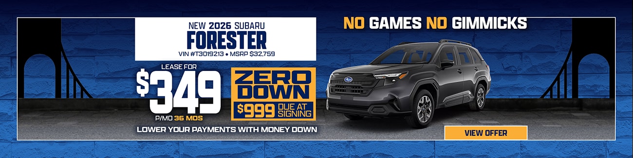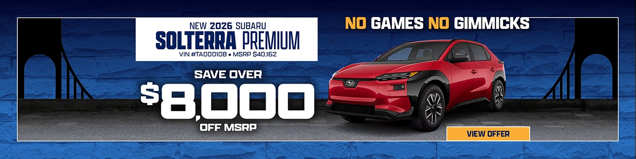 Bay Ridge Subaru makes it easy for Brooklyn and New York City drivers to explore current Subaru specials across our full lineup. From versatile SUVs like the Forester and Outback to efficient options like the Impreza and Legacy-and electric models like the Solterra-this page connects you directly to available offers on in-stock vehicles.