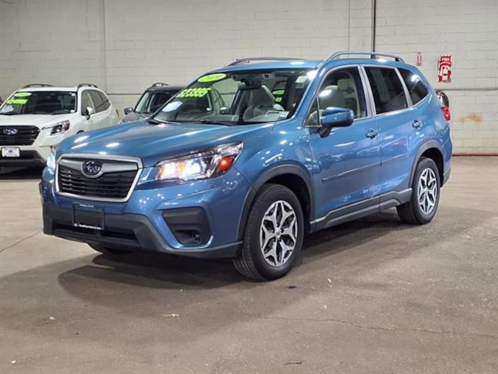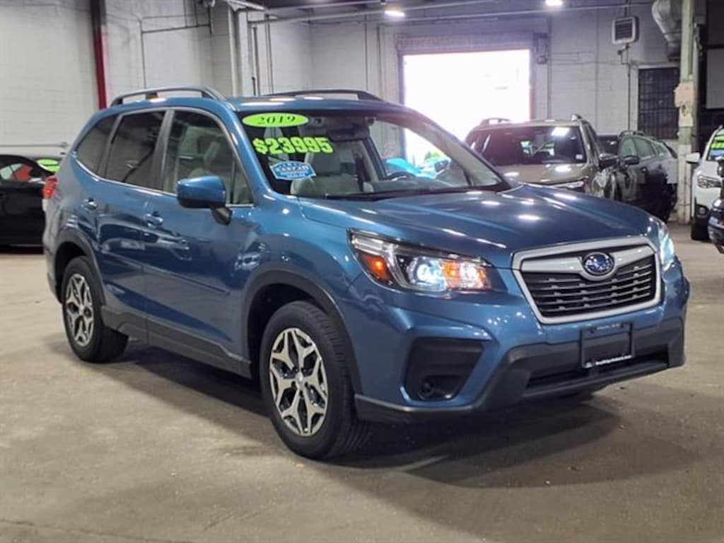 2019 Subaru Forester Premium 18K Miles All-Weather Floor Liners, All-Weather Package, Auto-Dimming Mirror with Compass, Body Side Molding - Horizon Blue Pearl, Cargo Tray, LED Upgrade - Map and Dome Lights, Rear Bumper Cover, USB Charging Ports 2019 The Car Connection Best Car to Buy, 2019 The Car Connection Best Car to Buy - Nominee, 2019 The Car Connection Drivers Choice: Best New Family Car Experience adventure in this stunning Blue 2019 Subaru Forester AWD Premium! Designed for versatility and safety, this crossover comes equipped with Subaru's legendary symmetrical all-wheel drive, perfect for all road conditions. Enjoy peace of mind with features like Front Automatic Emergency Braking, Lane Keeping Assist, Adaptive Cruise Control, and a Rearview Camera System. Stay connected and entertained with Apple CarPlay, Android Auto, Bluetooth, and STARLINK infotainment on a crisp 6.5-inch touchscreen. Comfort is key with a power-adjustable driver's seat, panoramic moonroof, all-weather floor liners, and a cargo tray for added practicality. The Forester's spacious interior, split-folding rear seats, and ample cargo space make it ideal for family trips or daily commutes. Additional highlights include heated seats, rear bumper cover, auto-dimming mirror with compass, and advanced safety features like Tire Pressure Monitoring and Traction Control. Don't miss your chance to own this reliable, fuel-efficient, and well-equipped Forester. Schedule your test drive today!