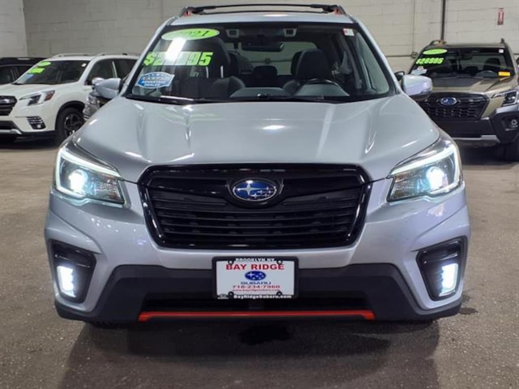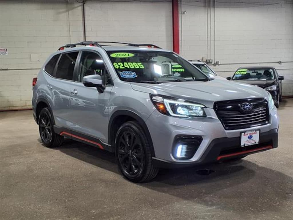 2021 Subaru Forester Sport 64K Miles Standard Model 2021 ALG Residual Value Award: Compact Utility Vehicle, 2021 ALG Residual Value Award: Mainstream Brand, 2021 Kelley Blue Book Best Resale Value: Compact SUV/Crossover Discover adventure and reliability in this Silver 2021 Subaru Forester AWD Sport! Enjoy all-weather confidence with Subaru's renowned Symmetrical All-Wheel Drive and a powerful yet efficient 2.5L engine paired with a 7-speed shiftable CVT. The Sport trim impresses with eye-catching black roof rails, panoramic power sunroof, and contrast stitching upholstery accents. Stay connected and entertained with STARLINK infotainment, Apple CarPlay, Android Auto, and multiple USB outlets for all passengers. Safety is top-notch with advanced features like Front Automatic Emergency Braking, Lane Centering, Blind Spot Detection, Rear Cross Traffic Alert, and adaptive cruise control. The Forester also boasts a spacious interior, rubber/vinyl cargo area floor mat, rear seat reminder, and reclining rear seats for added versatility. Perfect for families, commuters, and outdoor enthusiasts alike. Visit us today to experience this Forester Sport in person!