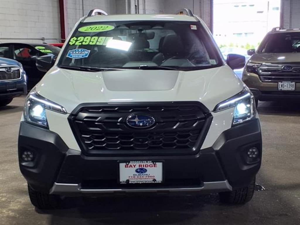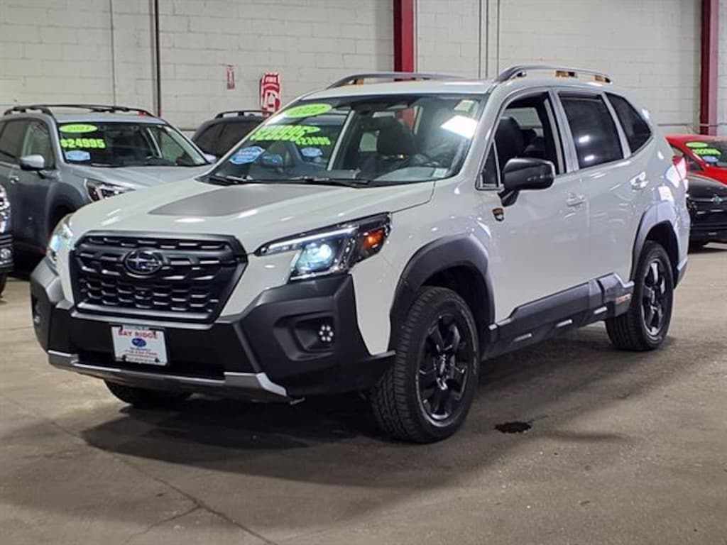 2022 Subaru Forester Wilderness 18K Miles Auto-Dimming Mirror with Compass and Homelink, Exterior Auto-Dimming Mirrors with Approach Lighting, Multimedia Plus Audio, Harman Kardon Amplifier and Speakers, and Power Rear Gate, Rear Bumper Cover 2022 AAA Green Car Guide Best Vehicles Under 35k, 2022 ALG Residual Value Award: Compact Utility Vehicle, 2022 US News Best Cars for the Money: Finalist Experience adventure in this White 2022 Subaru Forester Wilderness AWD Crossover. Designed for those who want rugged capability, this Forester features Subaru's advanced AWD system and a 2.5L H4 engine paired with an 8-speed shiftable CVT for smooth, confident driving on any terrain. Enjoy top safety with Front and Rear Automatic Emergency Braking, Pedestrian Detection, Adaptive Cruise Control, Lane Centering, and Blind Spot Detection. Stay connected with an 8-inch touchscreen, STARLINK Infotainment, Apple CarPlay, Android Auto, Harman Kardon premium audio, and multiple USB power outlets. The Power Rear Gate, heated seats, panoramic moonroof, and durable rubber/vinyl cargo mats offer added comfort and convenience. Black roof rails, underguard bumpers, and exclusive Wilderness styling details complete the package. Well-maintained and ready for your next journey, this Forester Wilderness combines capability, technology, and style for your active lifestyle. Visit us for a test drive today!
